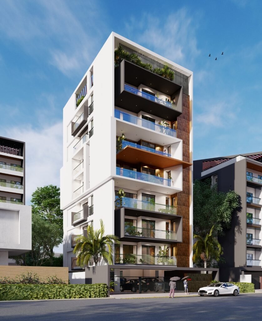 With 7 floors and a total built-up area of 19,000 sq. ft., the project is designed to deliver comfortable living with contemporary design and quality construction.